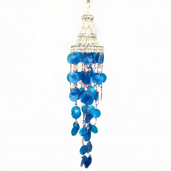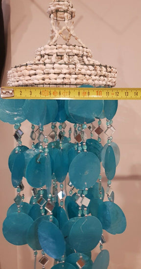 Coastal Shell & Capiz Aqua Hanging Windchime 70cm L Natural Beach Art Ornament