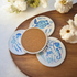 Hamptons Coastal Blue & White Sea Life round Ceramic Tile Coaster Set x 4