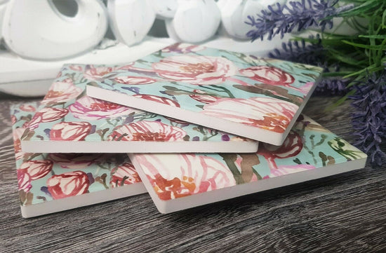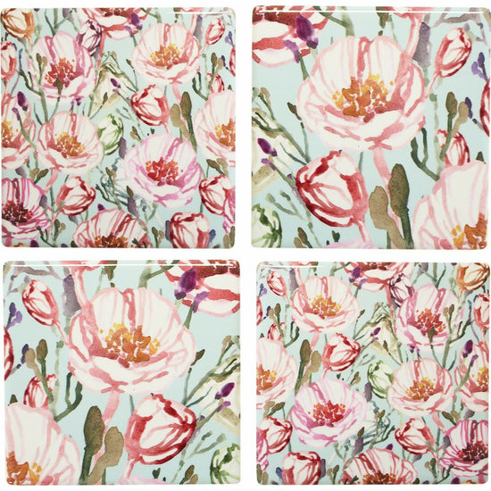 Summer Floral Ceramic Tile Coaster Set x 4 French Provincial Farm Country Shabby Chic Home Decor.