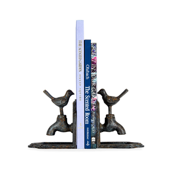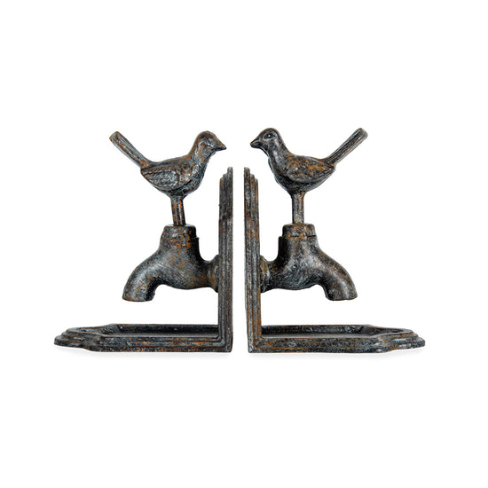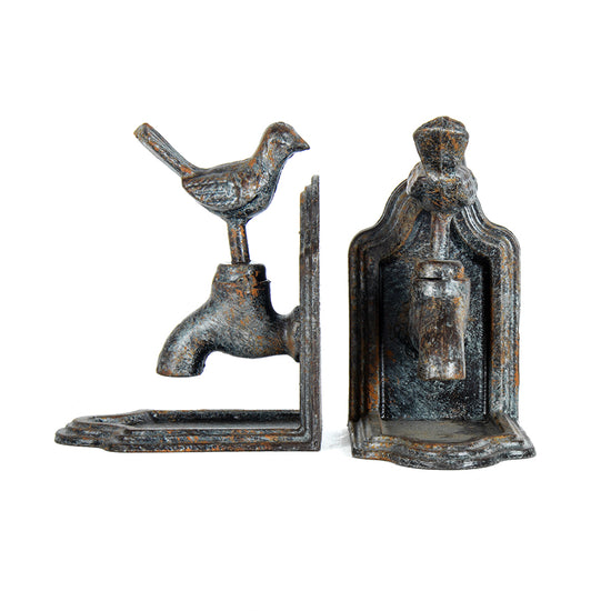 Set French Bookends Cast Iron Bird on Vintage Tap 12x12cm